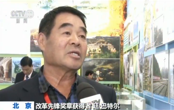 改革先鋒獎(jiǎng)?wù)芦@得者 廷·巴特爾:我們國家這40年,黨中央指引的路子很正確。習(xí)總書記講,綠水青山就是金山銀山,在十八大以后,近幾年在治理草原生態(tài),恢復(fù)草場(chǎng),讓牧民收入逐漸增收,現(xiàn)在我們一個(gè)村整體脫貧了。