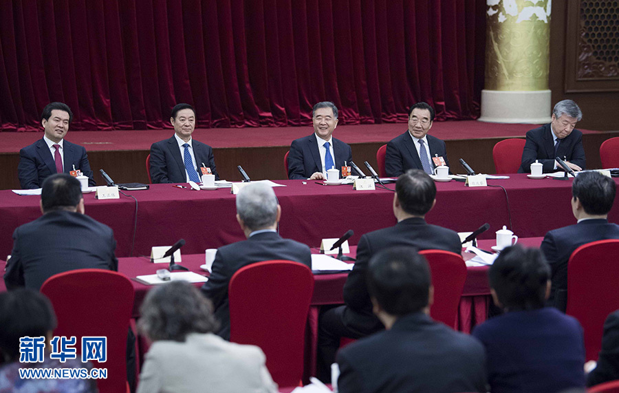 3月4日,中共中央政治局常委、全國政協(xié)十三屆一次會(huì)議主席團(tuán)會(huì)議主持人汪洋看望出席全國政協(xié)十三屆一次會(huì)議的中共界委員并參加討論。新華社記者 李濤 攝