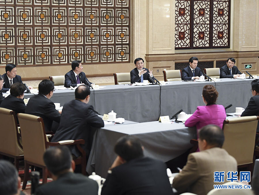 3月4日,中共中央政治局常委韓正看望出席全國政協(xié)十三屆一次會(huì)議的民革、民進(jìn)界委員并參加討論。 新華社記者 王曄 攝