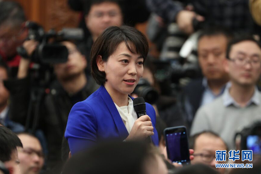 3月4日,十三屆全國(guó)人大一次會(huì)議在人民大會(huì)堂新聞發(fā)布廳舉行新聞發(fā)布會(huì),由大會(huì)發(fā)言人張業(yè)遂就大會(huì)議程和人大工作相關(guān)的問(wèn)題回答中外記者的提問(wèn)。圖為中央電視臺(tái)記者提問(wèn)。新華網(wǎng)/中國(guó)政府網(wǎng) 陳杰 攝