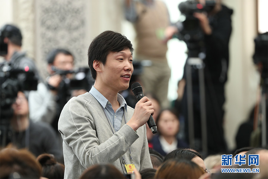 3月4日,十三屆全國人大一次會議在人民大會堂新聞發(fā)布廳舉行新聞發(fā)布會,由大會發(fā)言人張業(yè)遂就大會議程和人大工作相關的問題回答中外記者的提問。圖為法制日報記者提問。新華網(wǎng)/中國政府網(wǎng) 翟子赫 攝