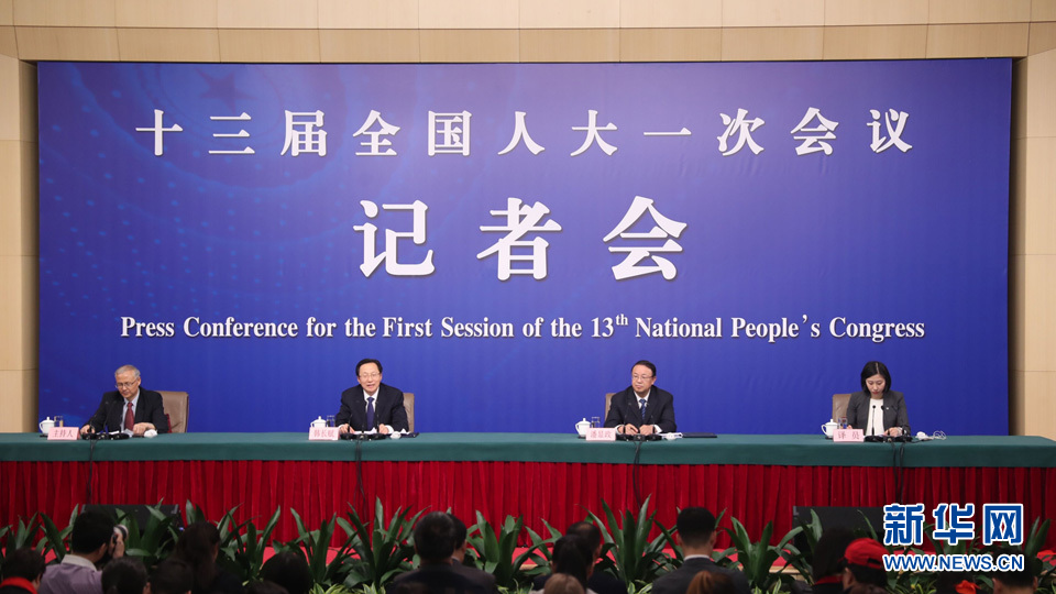 十三屆全國人大一次會議新聞中心于3月7日在梅地亞中心多功能廳舉行記者會,邀請農(nóng)業(yè)部部長韓長賦,農(nóng)業(yè)部新聞發(fā)言人、辦公廳主任潘顯政就“實施鄉(xiāng)村振興戰(zhàn)略 推動農(nóng)業(yè)轉(zhuǎn)型升級”的相關(guān)問題回答中外記者的提問。圖為記者會現(xiàn)場。新華網(wǎng)/中國政府網(wǎng) 陳杰 攝