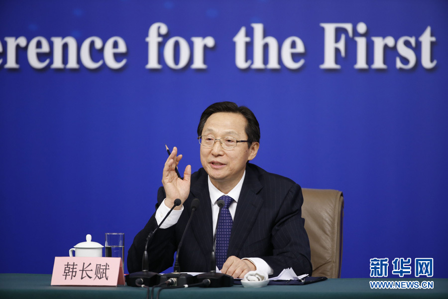 十三屆全國人大一次會議新聞中心于3月7日在梅地亞中心多功能廳舉行記者會,邀請農(nóng)業(yè)部部長韓長賦,農(nóng)業(yè)部新聞發(fā)言人、辦公廳主任潘顯政就“實(shí)施鄉(xiāng)村振興戰(zhàn)略 推動農(nóng)業(yè)轉(zhuǎn)型升級”的相關(guān)問題回答中外記者的提問。圖為韓長賦回答記者提問。新華網(wǎng)/中國政府網(wǎng)翟子赫攝
