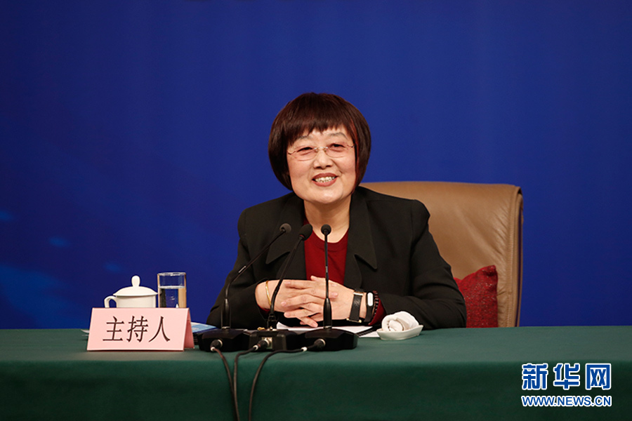 十三屆全國人大一次會議新聞中心于3月7日在梅地亞中心多功能廳舉行記者會,邀請國務(wù)院扶貧辦主任劉永富就“打好精準(zhǔn)脫貧攻堅戰(zhàn)”的相關(guān)問題回答中外記者的提問。圖為記者會主持人王冬梅。新華網(wǎng)/中國政府網(wǎng) 陳杰 攝