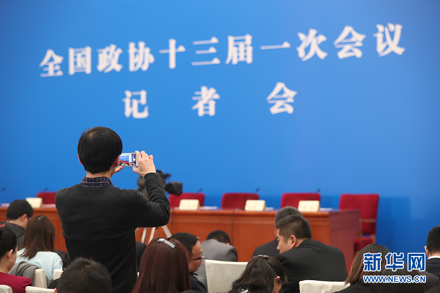 全國政協(xié)十三屆一次會議3月8日15:00在人民大會堂新聞發(fā)布廳舉行第二場記者會,邀請中央財經(jīng)領(lǐng)導(dǎo)小組辦公室副主任楊偉民,中國進出口銀行董事長、黨委書記胡曉煉,農(nóng)業(yè)部原副部長陳曉華,全國工商聯(lián)副主席、清華大學(xué)經(jīng)濟管理學(xué)院院長錢穎一,中國中化集團有限公司黨組書記、董事長寧高寧就推動經(jīng)濟高質(zhì)量發(fā)展回答記者提問。圖為記者在現(xiàn)場拍攝。新華網(wǎng)/中國政府網(wǎng) 翟子赫 攝?