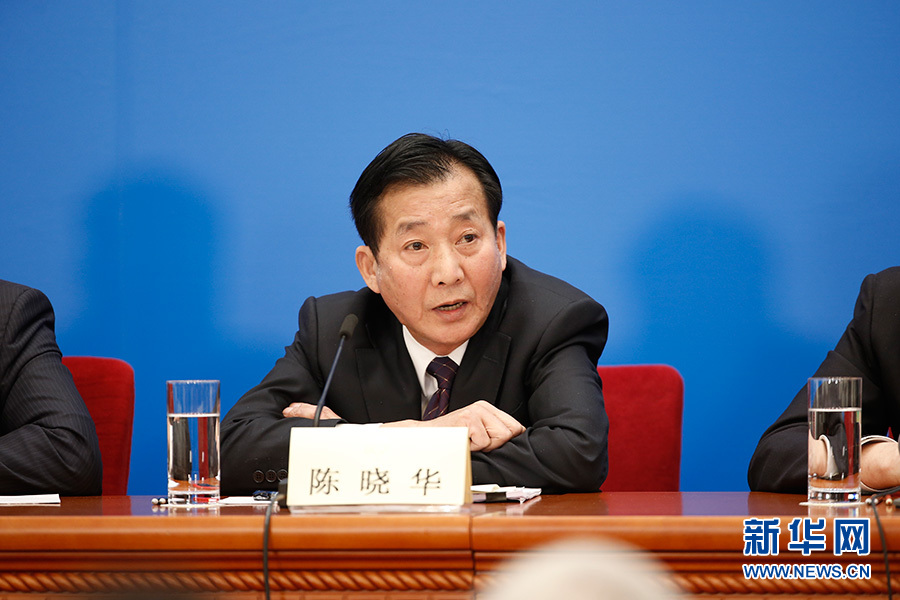 全國政協(xié)十三屆一次會議3月8日15:00在人民大會堂新聞發(fā)布廳舉行第二場記者會,邀請中央財經(jīng)領(lǐng)導(dǎo)小組辦公室副主任楊偉民,中國進出口銀行董事長、黨委書記胡曉煉,農(nóng)業(yè)部原副部長陳曉華,全國工商聯(lián)副主席、清華大學(xué)經(jīng)濟管理學(xué)院院長錢穎一,中國中化集團有限公司黨組書記、董事長寧高寧就推動經(jīng)濟高質(zhì)量發(fā)展回答記者提問。圖為農(nóng)業(yè)部原副部長陳曉華。新華網(wǎng)/中國政府網(wǎng) 陳杰 攝