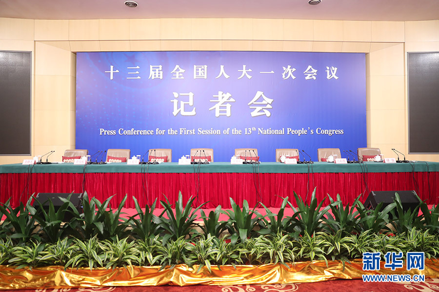 3月12日,十三屆全國人大一次會議新聞中心在梅地亞中心多功能廳舉行記者會,邀請十二屆全國人大內司委副主任委員王勝明、財經委副主任委員烏日圖、教科文衛(wèi)委副主任委員吳恒、環(huán)資委委員呂彩霞,全國人大常委會法工委副主任王超英、副主任許安標就“人大立法工作”相關問題回答中外記者提問。圖為記者會開始前。新華網/中國政府網 翟子赫 攝