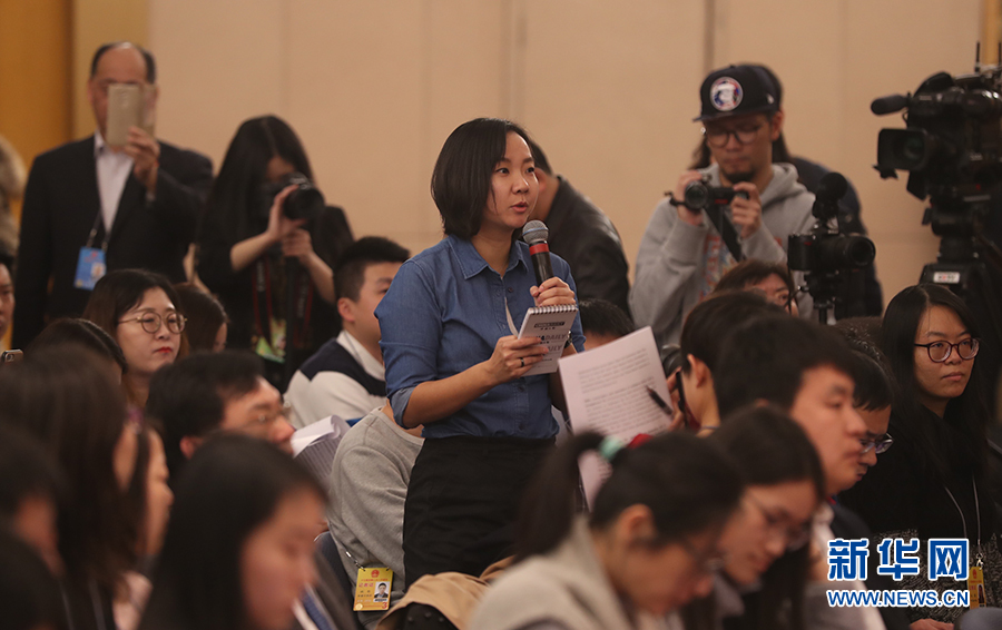 十三屆全國人大一次會議新聞中心于3月17日15時在梅地亞中心多功能廳舉行記者會,邀請環(huán)保部部長李干杰就“打好污染防治攻堅戰(zhàn)”相關問題回答中外記者提問。圖為中國日報社記者提問。新華網(wǎng)/中國政府網(wǎng) 曲植 攝?