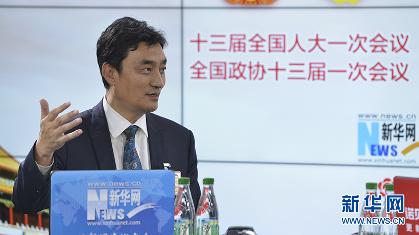 圖為18日,全國人大代表,云南省曲靖市委副書記、市長董保同做客新華網(wǎng)2018全國兩會特別訪談。新華網(wǎng) 李相博攝