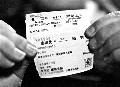 秘京春告訴北京青年報(bào)記者,6451次最初是給鐵路職工上下班的通勤車,使用最簡(jiǎn)易的車廂,鐵路職工免費(fèi)乘坐,同時(shí)面向社會(huì)開(kāi)放,由于票價(jià)低廉,非常貼近普通百姓。但隨著時(shí)代發(fā)展,很多老綠皮車線路停運(yùn)。為留作紀(jì)念,秘京春購(gòu)買了6451/6452次最后一趟的全程車票,單程票價(jià)6.5元。但他并不打算坐滿全程,而是到廊坊北下車,再轉(zhuǎn)乘別的列車返京,用他的話說(shuō)是“買長(zhǎng)坐短”。