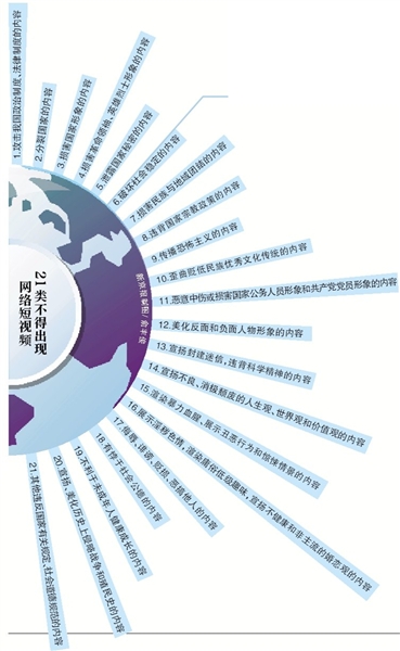 《規(guī)范》和《細(xì)則》針對(duì)網(wǎng)絡(luò)視聽(tīng)領(lǐng)域存在的不足和薄弱環(huán)節(jié),分別對(duì)開(kāi)展短視頻服務(wù)的網(wǎng)絡(luò)平臺(tái)以及網(wǎng)絡(luò)短視頻內(nèi)容審核的標(biāo)準(zhǔn)進(jìn)行規(guī)范。《細(xì)則》明確了21類(lèi)、100項(xiàng)內(nèi)容,“喪文化”“一夜情”“非主流婚戀觀”等都不得出現(xiàn)在短視頻中。