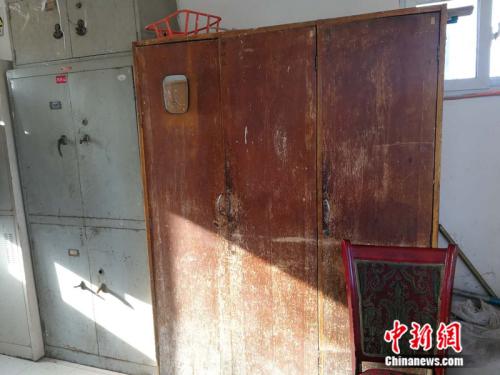 更衣室內(nèi)的木質(zhì)衣柜已經(jīng)變成“老古董”。 中新網(wǎng)記者 張尼 攝