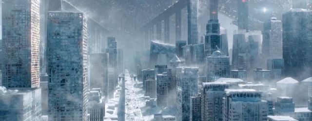 在預(yù)告片里,災(zāi)難來臨之際,未來的北京和上海成為冰封的世界,東方明珠塔被凍結(jié)在了皚皚冰原之中。影評人不僅驚嘆于高水平的特效制作,更感慨中國情境下的標(biāo)志性元素和敘事風(fēng)格。