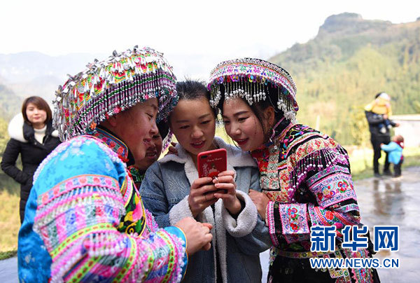 四川省敘永縣后山鎮(zhèn)三斗米村婦女在查看手機(1月16日攝)。新華社記者 謝佼 攝