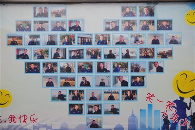 昨日下午,西昌大隊的駐地,一個櫥窗里貼著心形的“笑臉墻”。這當(dāng)中有26人再也無法返回駐地。