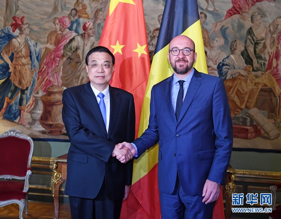 當(dāng)?shù)貢r(shí)間4月9日上午,國(guó)務(wù)院總理李克強(qiáng)在布魯塞爾埃格蒙宮會(huì)見(jiàn)比利時(shí)首相米歇爾。新華社記者 張領(lǐng) 攝