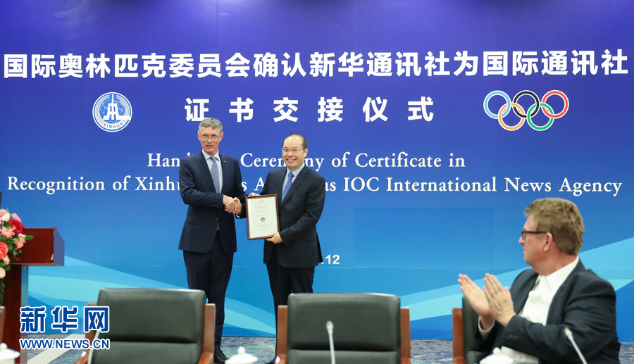 新華社接受國際奧委會(huì)國際通訊社證書