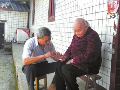 4月11日上午,在內江市東興區(qū)高梁鎮(zhèn)楊嶺村一戶農房里,73歲的村民陳應全正拿著梳子嫻熟地為96歲的母親梳頭。梳完頭,陳應全又拿出蘋果,削皮后分成小塊喂給母親吃。