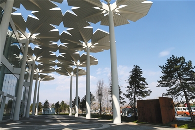 國際館的“花傘”下留出公共空間。
