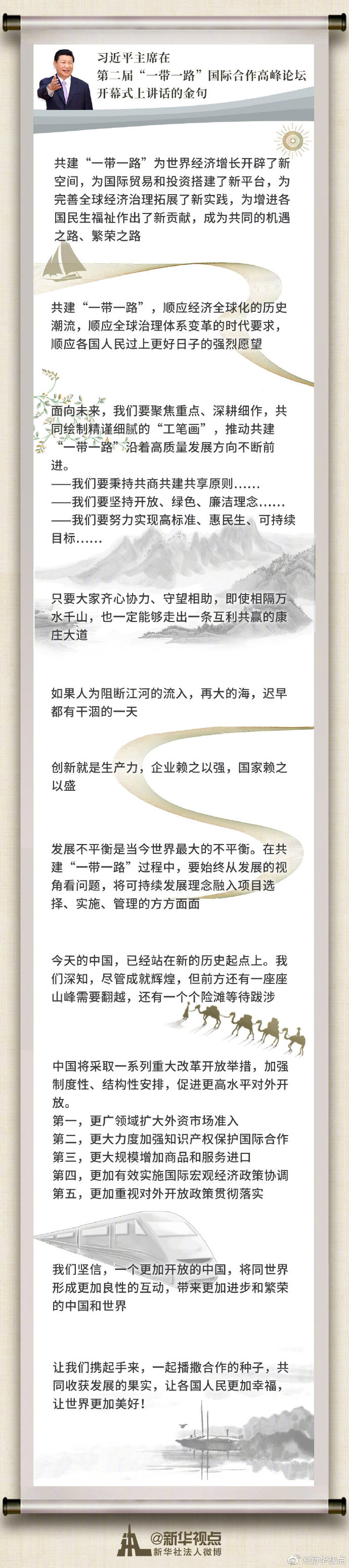 習近平主席在第二屆“一帶一路”國際合作高峰論壇開幕式上講話金句