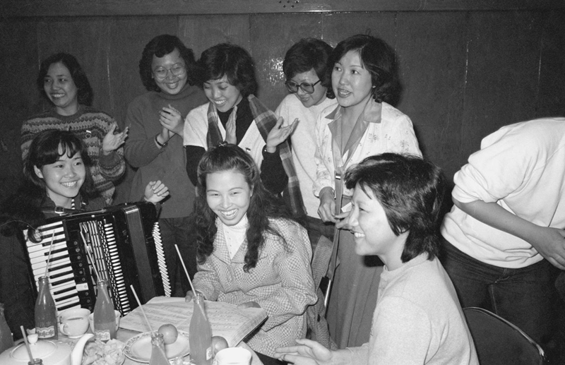 中、新兩國演員聯(lián)歡? 1983年3月19日,新加坡佳音合唱團的演員同中國歌劇演員在北京民族文化宮舉行聯(lián)歡。這是兩國演員在一起共唱中國歌曲《年輕的朋友來相會》。 新華社記者楊慎和攝