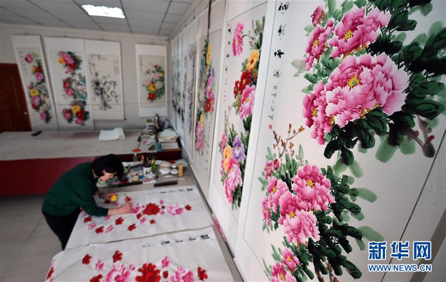 作畫近30年的郭亞修認為鄉(xiāng)土地域和人文環(huán)境成就了平樂,“平樂人愛牡丹、畫牡丹,牡丹寓意富貴、吉祥,平樂就從牡丹里討到了名氣和財氣?!?如今,平樂社區(qū)有千余名農(nóng)民畫家以畫牡丹為生。