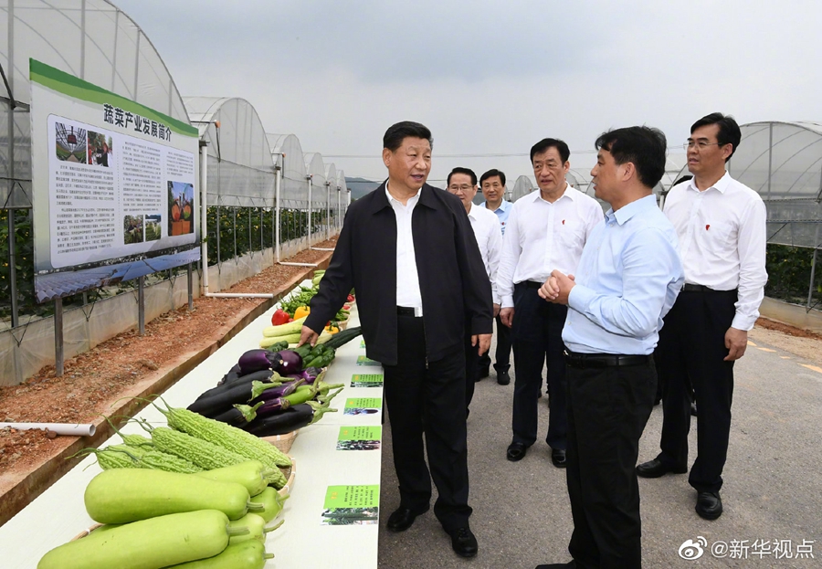 20日下午,習近平總書記來到江西省于都縣梓山富硒蔬菜產業(yè)園考察調研。產業(yè)園以“龍頭企業(yè)+合作社+農戶和貧困戶”發(fā)展模式,帶動了當?shù)卮迕衩撠氈赂?。看到總書記來了,正在大棚里勞作的鄉(xiāng)親們激動地說:“感謝黨的好政策,讓我們過上了幸福生活!”習近平對鄉(xiāng)親們說:“共產黨就是為人民群眾謀幸福的,黨中央想的就是千方百計讓老百姓過上好日子。芝麻開花節(jié)節(jié)高,今后日子會更好!”(文字:張曉松 攝影:謝環(huán)馳、鞠鵬)