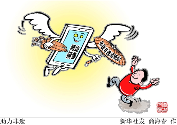 漫畫:助力非遺 新華社發(fā) 商海春 作