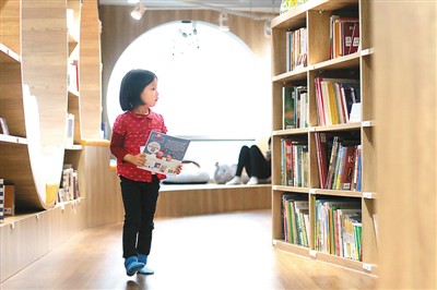 繪本圖書館里,孩子坐在家長身旁,捧著手中的書讀得津津有味。場館設計之初,王慧瑾親自“操刀”,定下了原木簡約風格的主基調(diào),就是為了滿足家長的高品質(zhì)審美需求,力圖打造一個家長和孩子都可以樂在其中的悠閑天地。