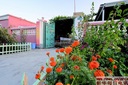 莎車縣維吾爾族農戶的院子門前也栽滿了萬壽菊花。