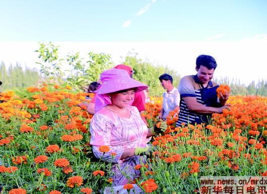 “種萬壽菊增收快,訂單農業(yè)很不錯。”巴格阿瓦提鄉(xiāng)巴格吉格代村貧困戶阿布力米提·賽麥提說,去年他只種了2.5畝萬壽菊就掙了5000元。