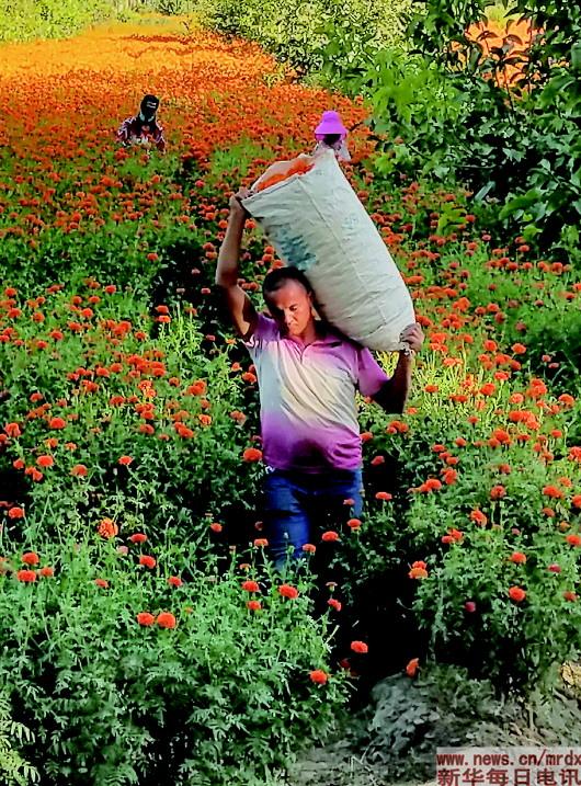 6月份進入收獲季節(jié),該村23歲的阿布都合力力·阿布力克木對記者說,以前種小麥和棉花,單產收入分別在400~500元和1200~1500元。今年他共種了18畝萬壽菊,已采摘了兩次,拿到了1.2萬元的現(xiàn)金。