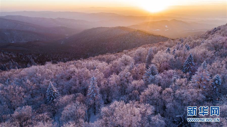 這是在長(zhǎng)白山林區(qū)拍攝的霧凇景色(2018年1月13日無(wú)人機(jī)拍攝)。新華社記者 許暢 攝