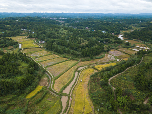 無(wú)人機(jī)拍攝的四川省樂至縣三河咀村的稻田 李昕鋒 攝