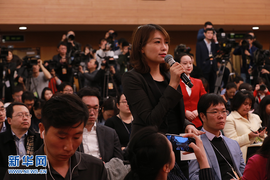 十三屆全國人大二次會議新聞中心于3月6日(星期三)上午10時在梅地亞中心新聞發(fā)布廳舉行記者會,邀請國家發(fā)展改革委主任何立峰,副主任寧吉喆、連維良就“大力推動經(jīng)濟(jì)高質(zhì)量發(fā)展”相關(guān)問題回答中外記者的提問。圖為中央廣播電視總臺央視記者提問。新華網(wǎng)/中國政府網(wǎng) 馬娟 攝