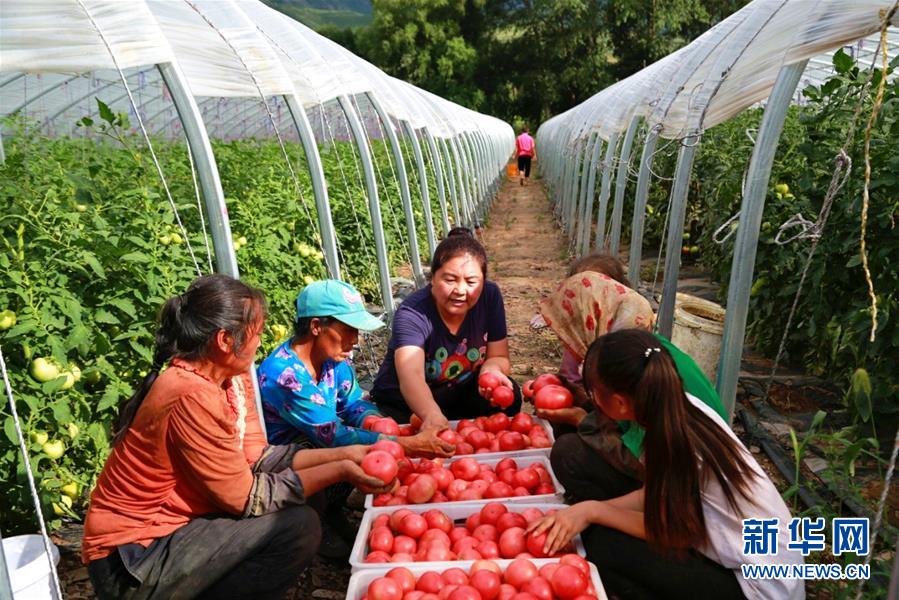 趙會杰在蔬菜大棚了解西紅柿的生長情況(資料照片)。 新華社發(fā)(李國志 攝)