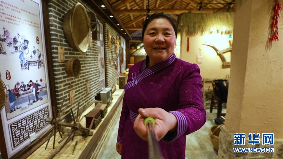 趙會杰在村里的民俗博物館自拍錄視頻,展示保留下來的老物件。 新華社發(fā)(視頻截圖)