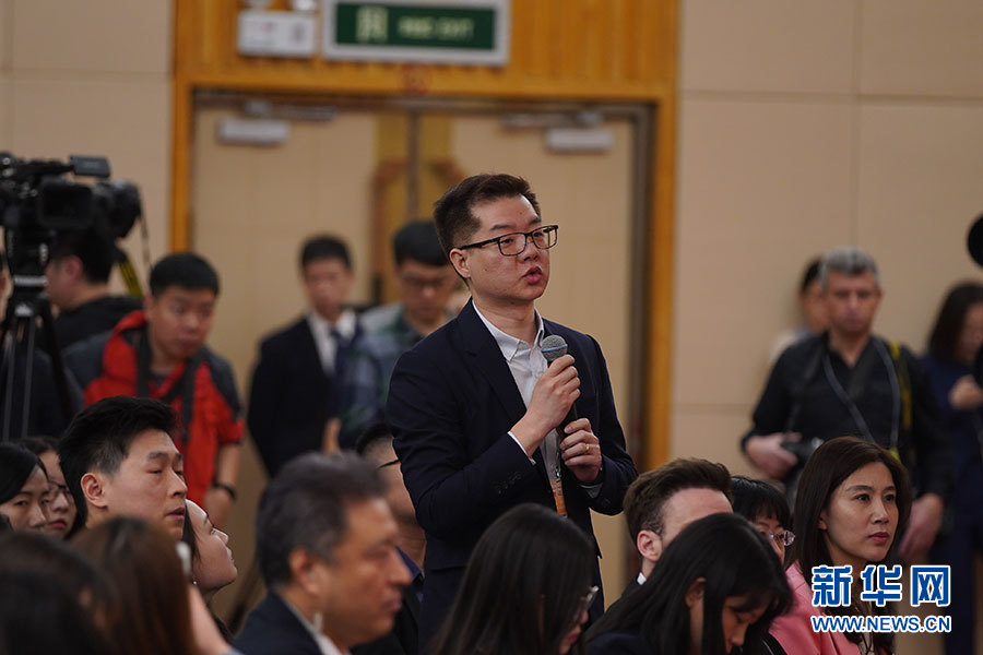 ????十三屆全國人大二次會(huì)議新聞中心3月7日9時(shí)在梅地亞中心新聞發(fā)布廳舉行記者會(huì),邀請(qǐng)財(cái)政部部長劉昆,副部長程麗華、劉偉就“財(cái)稅改革和財(cái)政工作”相關(guān)問題回答中外記者提問。圖為中央廣播電視總臺(tái)央視記者提問。新華網(wǎng)/中國政府網(wǎng) 劉廈 攝