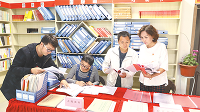 2019年是基層減負(fù)年,新疆庫車縣實行“基層一張表”試點改革,圖為干部到健康路社區(qū)匯總檔案報表。