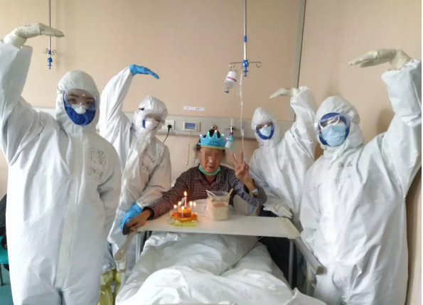易老先生對我們說:“你們讓我度過了一個別開生面,永生難忘的76歲壽誕,讓我重拾戰(zhàn)勝病毒的信心。雖然你們穿著防護(hù)服,戴著面罩,看不清你們的臉,但我相信你們都是最美的白衣天使?!?/p>