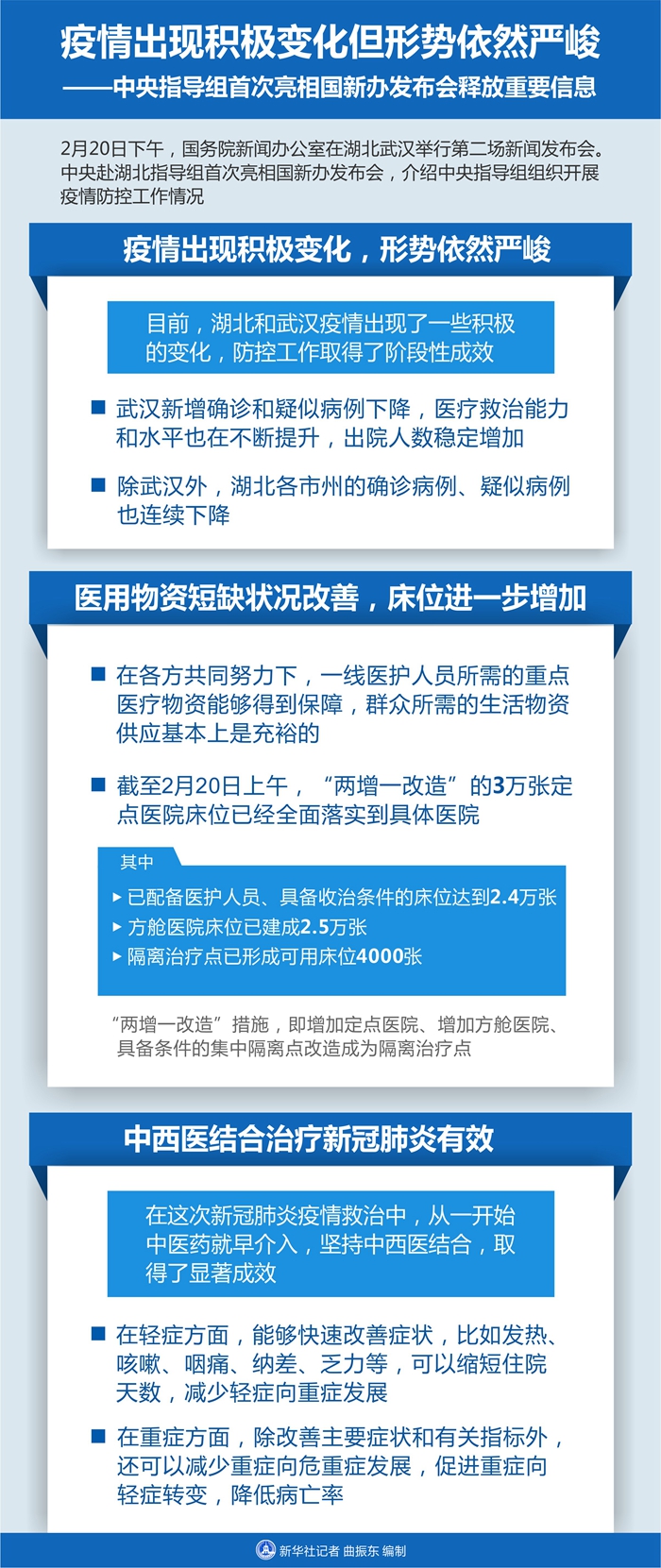 新華社武漢2月20日電 題:疫情出現(xiàn)積極變化但形勢依然嚴(yán)峻——中央指導(dǎo)組首次亮相國新辦發(fā)布會釋放重要信息