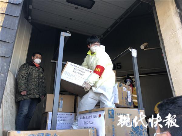 加入了洪山區(qū)志愿者之后,我們有了 " 洪山青年突擊隊(duì) " 的袖章。2 月 17 日,洪山區(qū)有 6 噸物資要送往武漢科技會(huì)展中心方艙醫(yī)院,我在群里發(fā)了消息之后,一下子 20 多輛車(chē)從武漢的各個(gè)地方開(kāi)往倉(cāng)庫(kù),然后一車(chē)一車(chē)運(yùn)往醫(yī)院。我等紅綠燈的時(shí)候,旁邊一輛軍車(chē)內(nèi)的小哥哥把車(chē)窗搖下來(lái),向我敬了一個(gè)軍禮,一瞬間,我覺(jué)得很鼓舞。