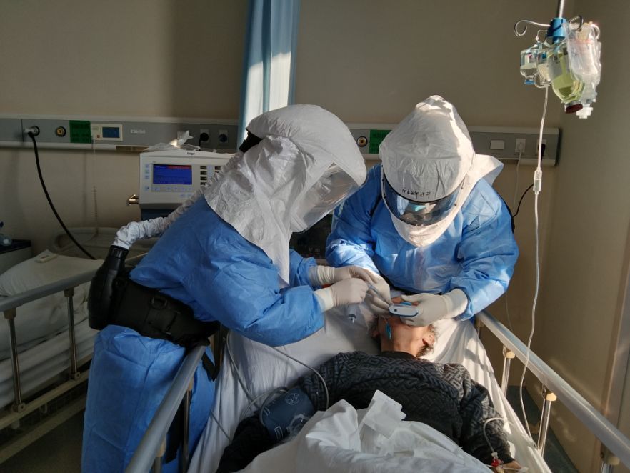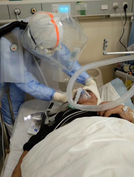 其次,因?yàn)樾鹿诜窝椎闹匕Y病人耐受時(shí)間短,對(duì)醫(yī)護(hù)人員也必須減少暴露時(shí)間,平常3-5分鐘的插管時(shí)間,現(xiàn)在必須在兩分鐘內(nèi)完成。看到病人痛苦無(wú)助的樣子,凌肯沒(méi)有時(shí)間害怕,在陳向東的指導(dǎo)下,他迅速冷靜,與同事兩人,一個(gè)推麻藥,一個(gè)負(fù)責(zé)插管。整個(gè)過(guò)程麻利干脆,用時(shí)90秒。除去60秒打麻藥的過(guò)程,真正插管只用了30秒。
