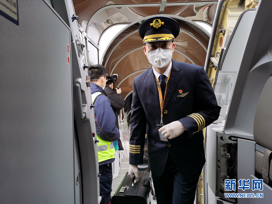 2月2日,全國“最美退役軍人”劉傳健主動(dòng)申請執(zhí)飛運(yùn)輸任務(wù),護(hù)送四川第三批支援湖北醫(yī)療隊(duì)醫(yī)護(hù)人員和物資赴武漢。 新華社發(fā)