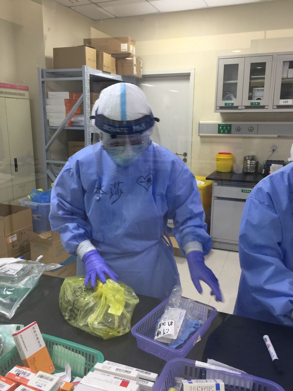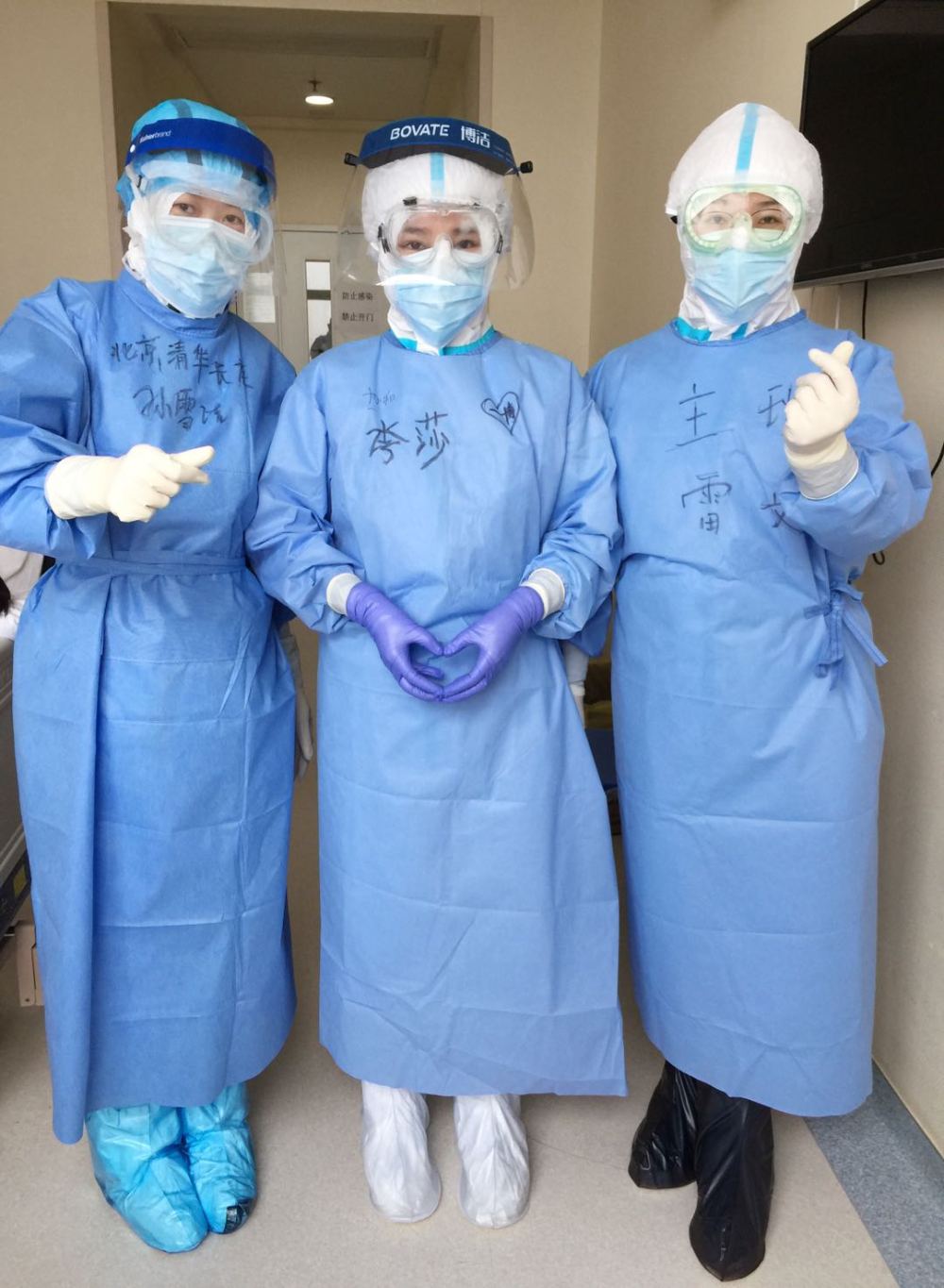 我想了想,有點(diǎn)開玩笑地說(shuō):“家人現(xiàn)在都很平安,唯一的心愿是可以見(jiàn)到我最喜歡的偶像王一博?!比缓笸聜兙推鸷逭f(shuō)要錄下來(lái),并在我的防護(hù)服上寫了四個(gè)大字“一博等我”。