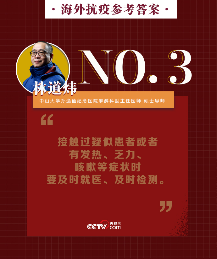 新冠肺炎疫情在全球持續(xù)暴發(fā),海外同胞如何做好基本防護(hù)、保證自身安全?出現(xiàn)焦慮緊張的負(fù)面情緒該如何緩解?中山大學(xué)孫逸仙紀(jì)念醫(yī)院麻醉科副主任醫(yī)師、碩士導(dǎo)師林道煒?biāo)蜕嫌埠斯ヂ裕捍骺谡?、注意手衛(wèi)生、減少與人接觸。做好這些,新冠病毒不可怕。