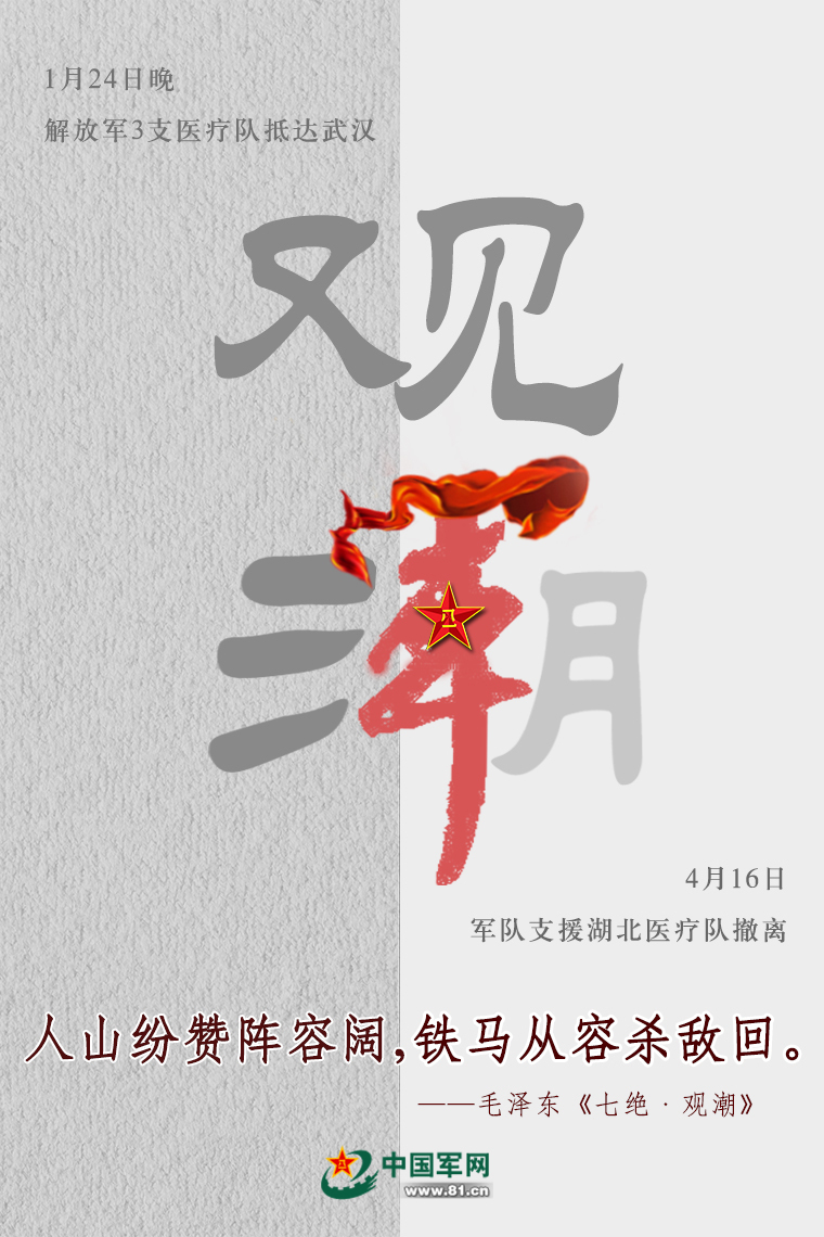 經(jīng)中央軍委主席習(xí)近平批準(zhǔn),軍隊(duì)支援湖北醫(yī)療隊(duì)在圓滿完成承擔(dān)的武漢火神山醫(yī)院、武漢市泰康同濟(jì)醫(yī)院、湖北省婦幼保健院光谷院區(qū)確診患者醫(yī)療救治任務(wù)后,采取民航包機(jī)和鐵路運(yùn)輸投送方式,陸續(xù)離開武漢完成回撤。