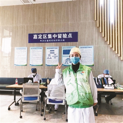 還在隔離時,曹元元就希望隔離結束后能夠當一名志愿者回饋社會,她也詢問了嘉定區(qū)的工作人員。她告訴北青報記者,因為在機場檢疫時收獲感動,一開始她最想去機場當志愿者,后來得知工作強度太大,機場主要招募男性志愿者,于是她選擇到嘉定區(qū)一個隔離點當志愿者。4月15日,曹元元正式上崗。