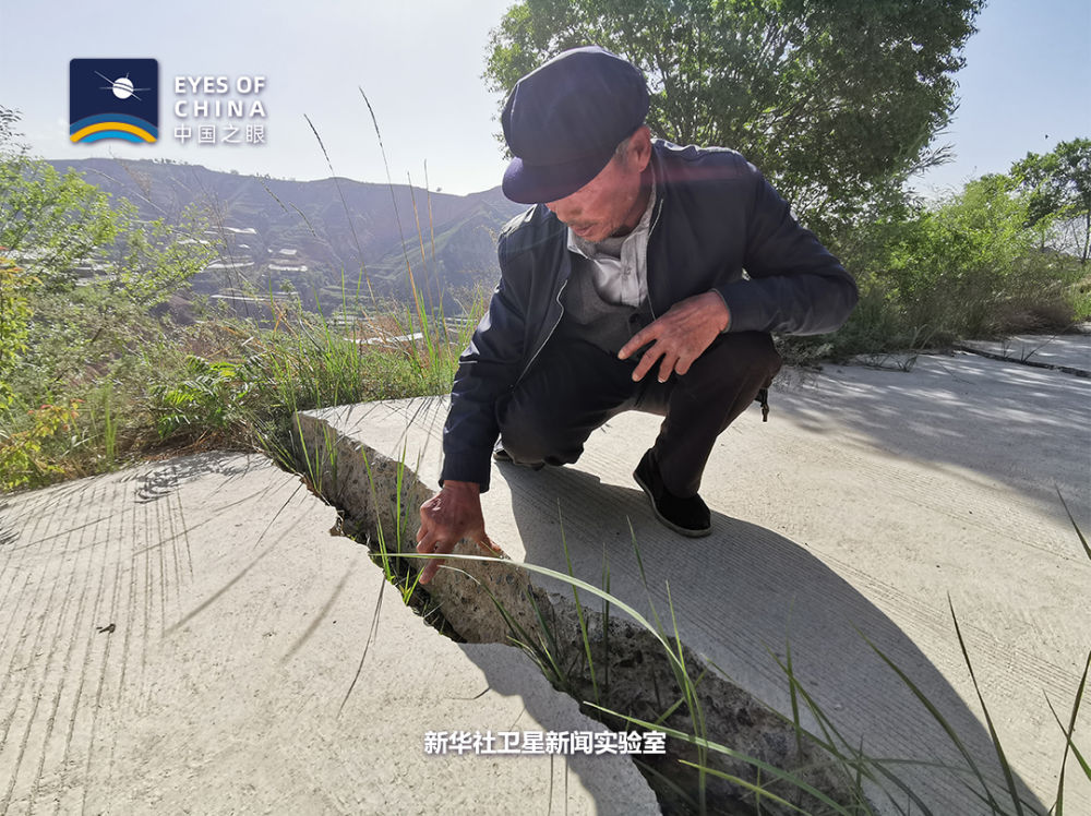白家溝村地處濕陷性黃土滑坡帶。從衛(wèi)星看,整個(gè)村子山峰陡峭,基巖裸露,難以找到一塊成片的平地。人只能見縫插針式地居住在疏松、干裂的黃土地上。一條崎嶇的路像絲帶一樣“搭”在懸崖峭壁上,隨時(shí)有掉下來的危險(xiǎn)。