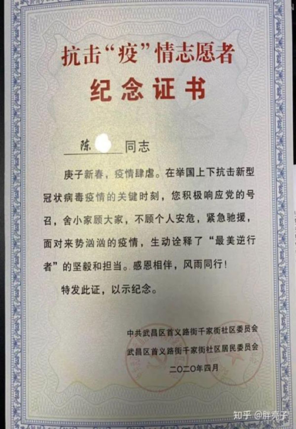在武漢,網(wǎng)友“胖亮子”說,2月底,他的妻子接到下沉社區(qū)做志愿者的通知,可以自愿選擇,但她很快答應(yīng)了?!捌綍r(shí)有點(diǎn)潔癖而且膽小的老婆在這個(gè)時(shí)候能夠挺身而出,讓我刮目相看?!?